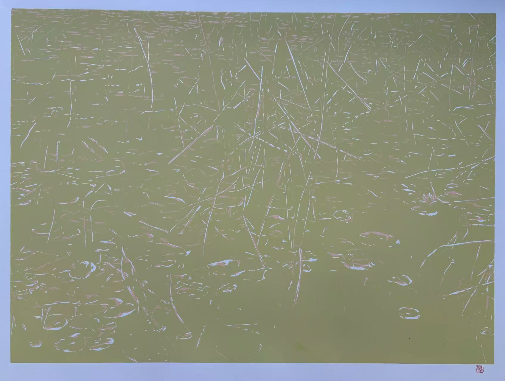 减版套色技法令版画家摆脱了多版套色木刻的繁琐,可以更为轻松自由有准确地实现丰富细腻的色彩和形式,层层印墨叠加,版画家需要对颜色具有十分出色的把控力,形式之外,绝版版画的肌理效果同样值得欣赏玩味。